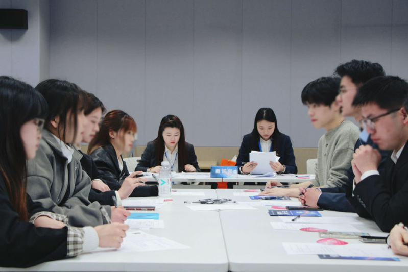 宣讲会尾声,校招组组织无领导小组讨论环节,围绕“如何提高销售团队的积极性和业绩”展开实战演练。同学们分组讨论、各抒己见,展现出00后独特的创新思维与团队协作能力。面试官通过逻辑表达、沟通能力等维度对候选人进行综合评估,并为优秀学生代表提供针对性指导,助力其积累求职经验。