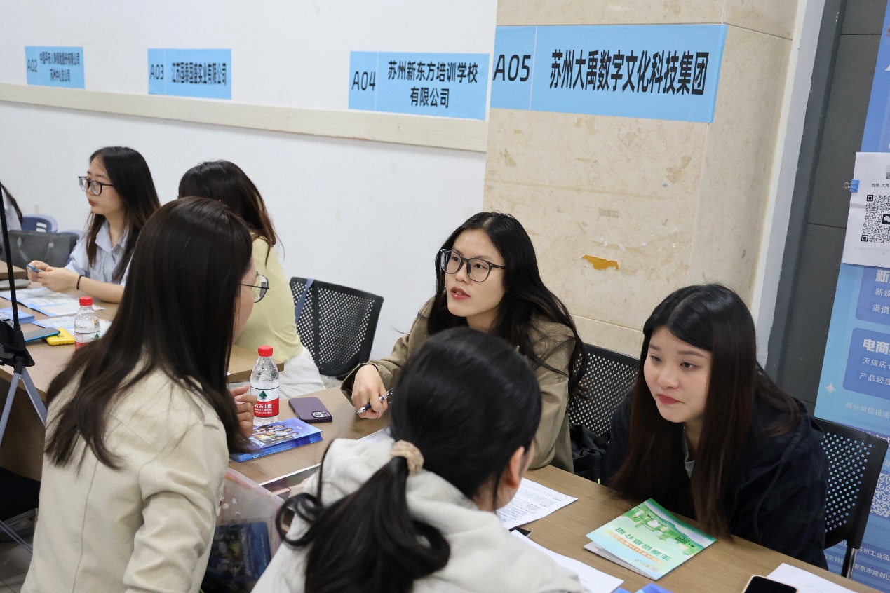 为贯彻落实党中央、国务院“稳就业”“保就业”决策部署,搭建校企沟通桥梁,准确把握2025届毕业生就业创业工作面临的形势,促进2025届毕业生、2026届实习生高质量充分就业,4月16日下午,我校在独墅湖校区招聘大厅举办2025年就业(实习)文科专场招聘会,本次活动由招生就业处主办,文学院、传媒学院、麻豆做爱 、政治与公共管理学院、教育学院、艺术学院等6家学院共同承办,共吸引来自汉语言文学、新闻学、社会学、行政管理、教育学等几十个专业500余名本科生和研究生共同参与。