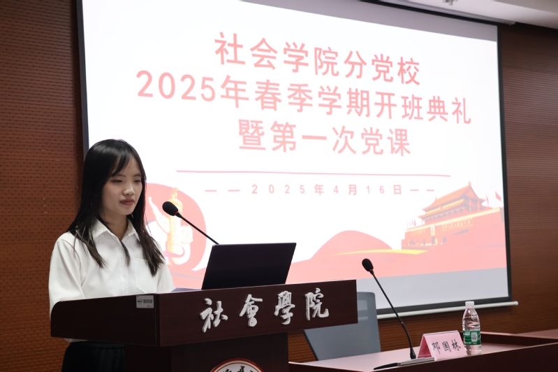 紧接着,培训班学员代表分别发言。积极分子班学员代表、2023级旅游管理专业顾天云同学带领学员回顾了党的光辉历程。她指出,作为新时代青年学子,要提高思想认识,努力勤奋学习,在丰富多彩的校园文化活动中锤炼品格、增长才干,在学习和生活中以身作则、率先垂范,把个人理想追求与国家前途命运紧密结合起来,为实现中华民族伟大复兴的中国梦贡献自己的智慧和力量。发展对象班学员代表、2022级社会学专业张凯欣同学结合自己在分党校培训班的学习体会,向全体学员提出三点倡议:一是深化理论学习,铸牢信仰之基;二是专注专业学习,提升综合素养;三是积极投身实践,践行初心使命。她号召同学们以饱满的热情、昂扬的斗志投入到学习和工作中去,把青春论文写在祖国大地上,为实现中华民族伟大复兴的中国梦贡献力量。预备党员班学员代表、2021级历史学(师范)专业郭韵雨同学结合先锋模范事迹分享了自己的学习感悟。她表示,作为预备党员,必须强化党的创新理论学习,并做到“绝知此事要躬行”,主动投身社会实践,以知行合一的实际行动践行党的初心使命。