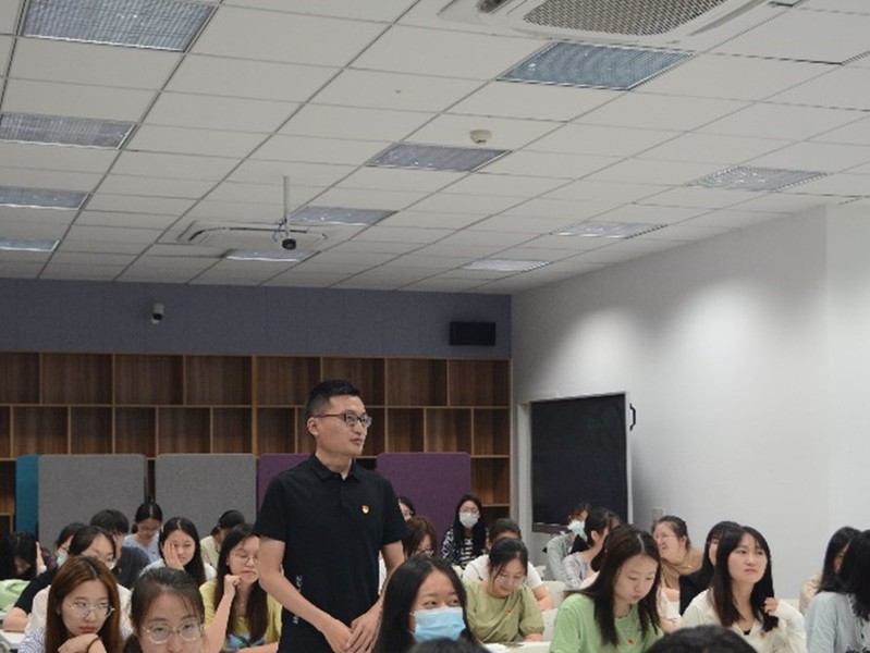活动第三部分为“榜样引领,薪火相传”毕业生党员经验分享会。毕业生党员代表2021级学科教学(历史)专业潘梦雪同学、2021级社会工作专业尹士林同学分别分享了他们在考编、就业方面的经验。潘梦雪从信息收集、实习准备、技巧总结等方面分享了自己在准备教师编过程的心得。她建议在前期准备试讲环节时,一方面要注重整堂课的教学设计,另一方面注重课文子目的教学设计,做好两手准备。尹士林则结合自己学习经历、科研经历、实习经历,建议要打好专业基础,扎实学习专业知识。除此之外,他鼓励大家勇于尝试,多多参加有助于提升综合能力的活动,有目的地打磨专业素养。