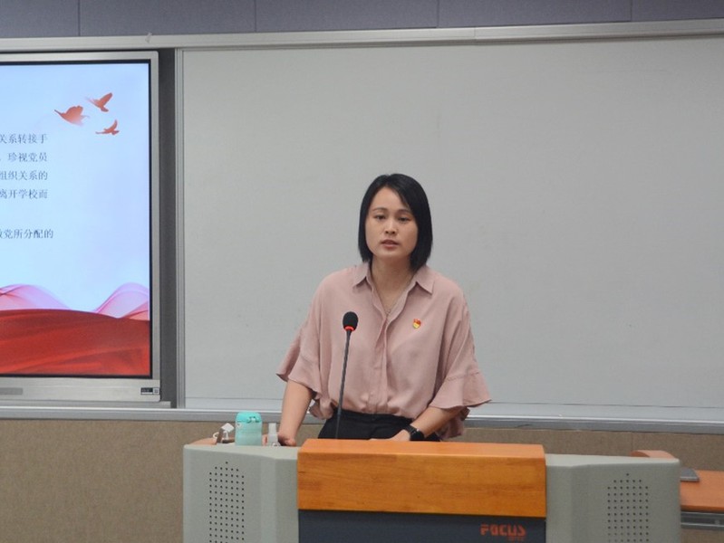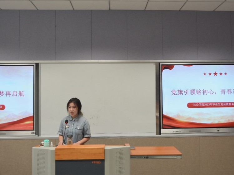 紧接着,2020级档案学专业李晓梅同学代表毕业生党员发言。李晓梅带领大家回望了第一堂党课与在麻豆做爱 一同奋斗的同窗时光。她呼吁大家以优秀党员的标准严格要求自己,努力学习,扎实工作,争取在未来的工作中取得更大的成绩,不辜负母校的培养,不辜负老师的教诲,牢记“养天地正气,法古今完人”的校训,做社会栋梁,为母校争光。