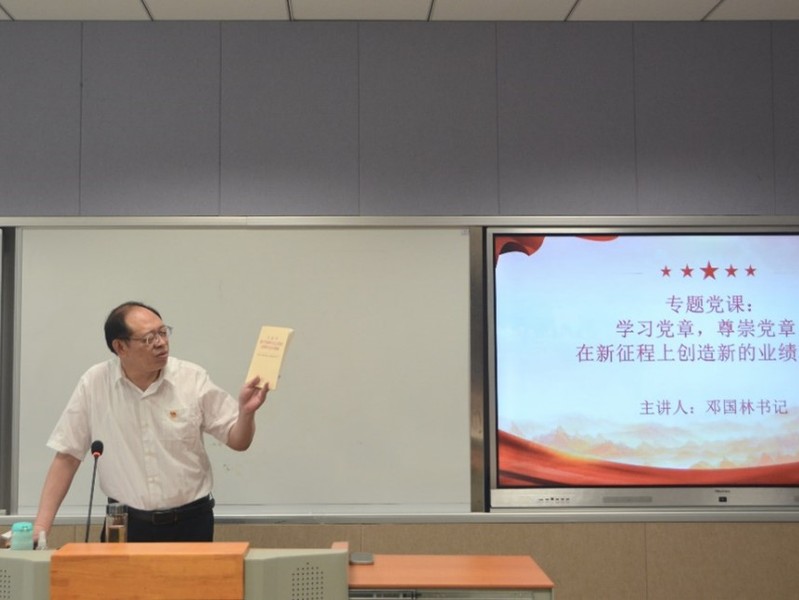 活动伊始,邓国林书记为毕业生党员讲授“学习党章,尊崇党章,在新征程上创造新的业绩和荣光”专题党课。他结合多个案例,带领大家重温党员的八项权力和八项义务,告诫同学们要时刻以党章为镜,以党章为尺,不断检视自我、规范自我。他强调,各位党员同学要主动扛起党员坚毅的政治担当,敢于亮身份、当先锋、做表率,不忘初心,在新征程上贡献青春力量。随后,邓书记开展学生党员座谈会,与同学们亲切交谈,听取同学们对学院、学校工作的建议。毕业生们纷纷表达了对学校、对党组织、对老师同学以及学校各个岗位上的工作人员的感恩之情,也进一步坚定了在未来工作与学习生活中永葆共产党员政治本色的信念!