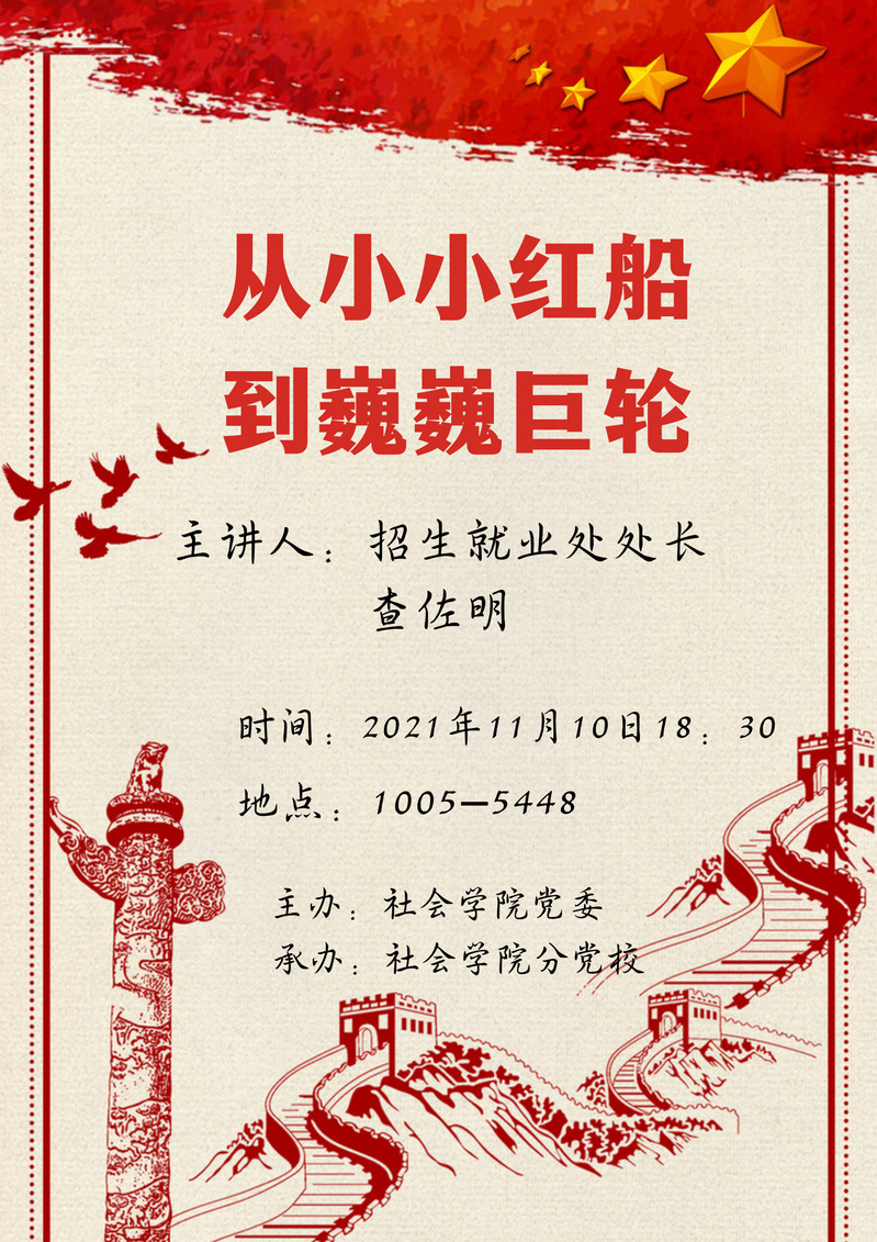 从小小红船到巍巍巨轮——招生就业处查佐明处长党课讲座
