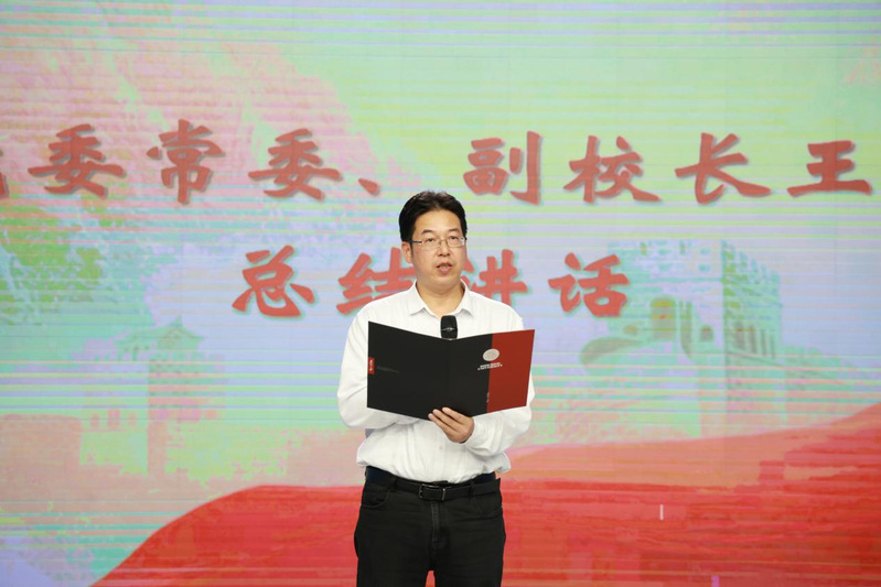 校党委常委、副校长王云杰在总结讲话中指出,抗战胜利的历史是中华民族不屈精神的生动见证,更是新时代理想信念教育的宝贵源。他对广大师生提出三点希望:一是以信仰为旗,把准人生航向。要从抗战精神中汲取信仰力量,坚定理想追求,筑牢精神根基;二是以实干为笔,书写青春答卷。要将爱国情转化为奋斗行,立足岗位勇担使命,用实干诠释担当;三是以创新为帆,赋能时代发展。要敢闯敢试、锐意创新,争做时代发展的参与者、推动者。