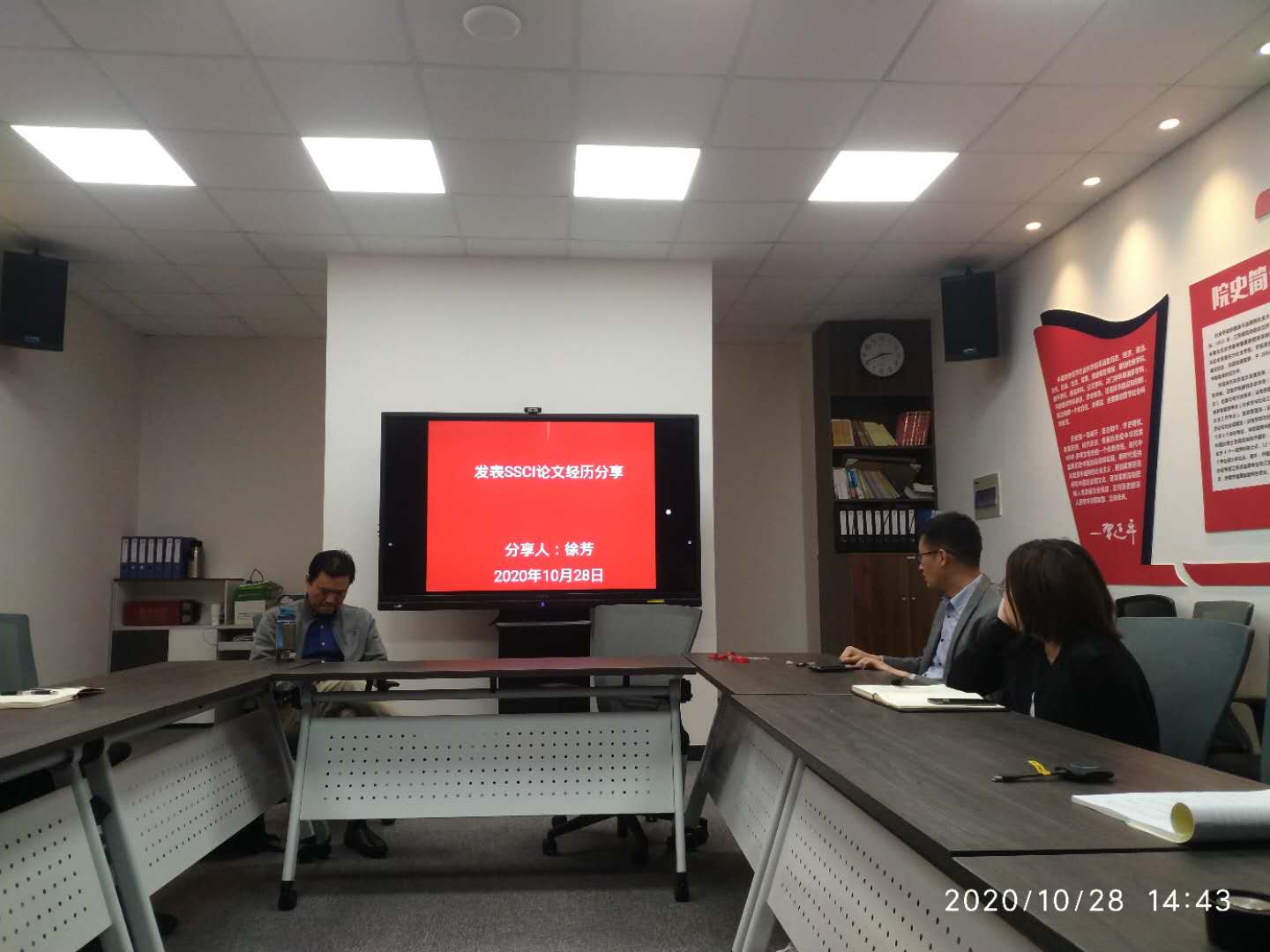 主题党日活动的最后,支部书记徐芳同志以“发表SSCI论文经历分享”为主题做了苏大图情档青年教师学术沙龙第一期的发言。徐芳同志结合自己2017年到南澳大学访学期间与合作导师澳大利亚国家杰出青年基金获得者杜佳博士合作开展量化研究,撰写、修改、投稿英文期刊论文的经历,分享了成功发表SSCI论文的心得体会。该主题发言获得在场党员的热烈回响,本次活动圆满结束。
