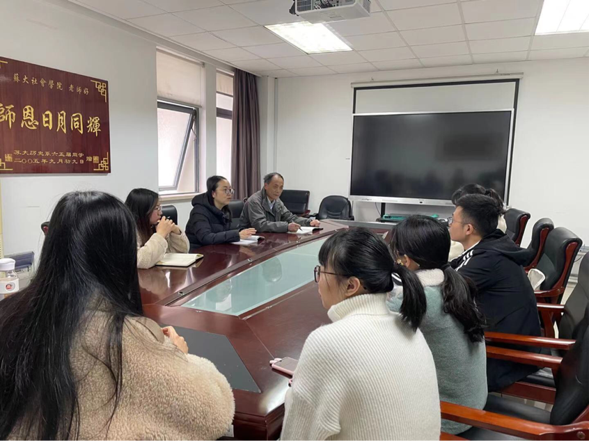 2021年3月16日麻豆做爱 关工委与研究生交流会议于独墅湖校区二期1005幢5511顺利召开。会议主要内容是以“党建一百周年”为主题,为完善麻豆做爱 党务工作提出相关建议。出席此次会议的有张明老师、郝珺老师、朱星洁老师以及社院研究生代表。