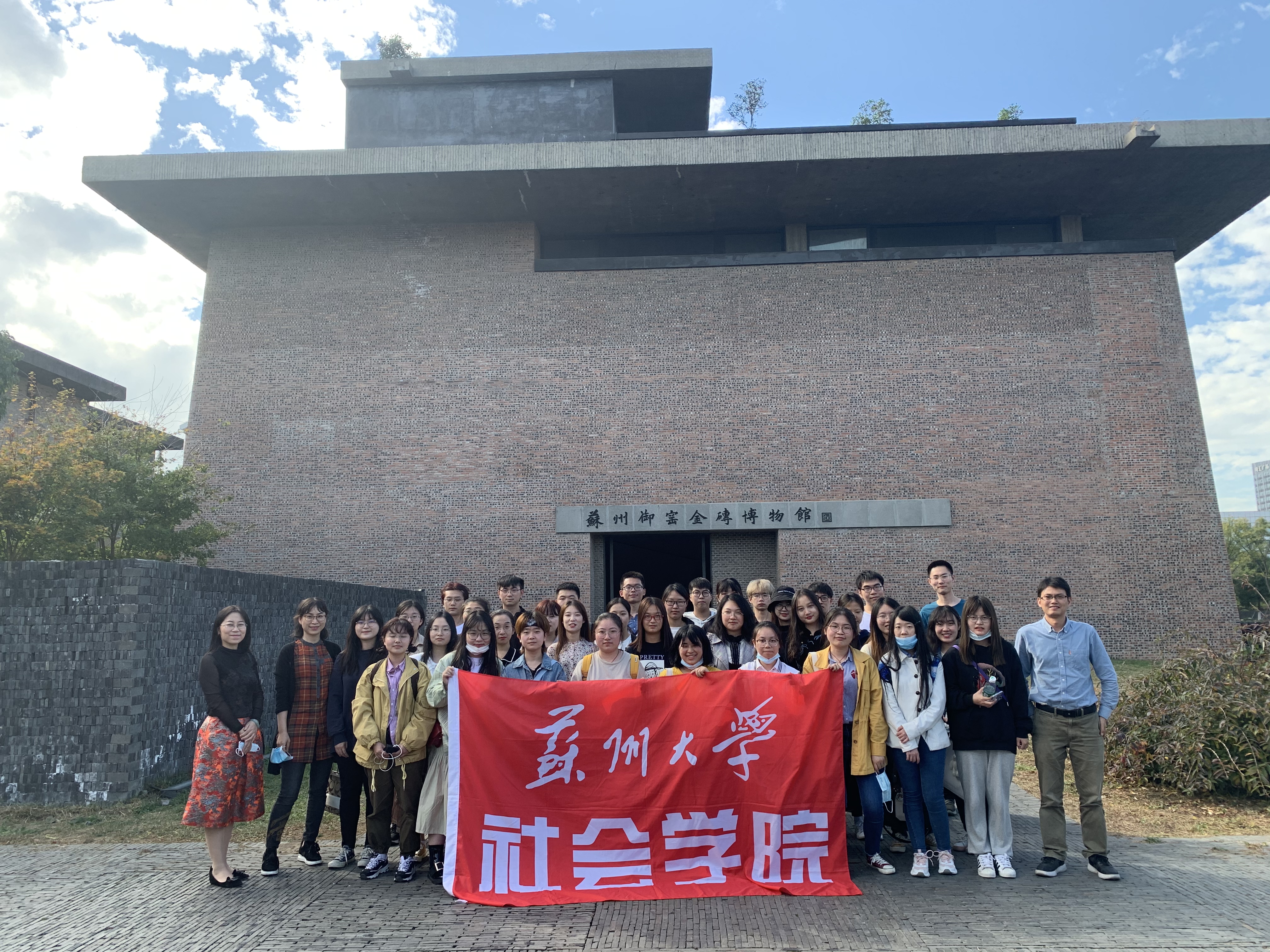 师生在苏州御窑金砖博物前的合影