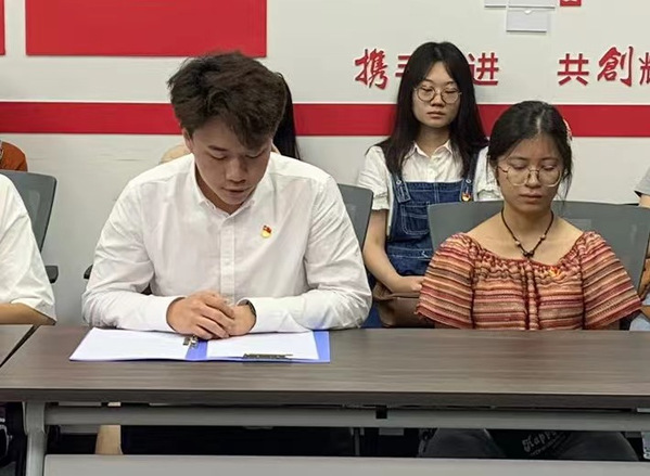 活动最后,全体新生党员在陈可欣同学的带领下,重温入党誓词,对党组织作出庄严承诺。期望新生党员们能够牢记党旗下许过的铮铮誓言,继续积极发挥模范带头作用,敢为人先、勤学苦练,做为党为人民服务的先行者!