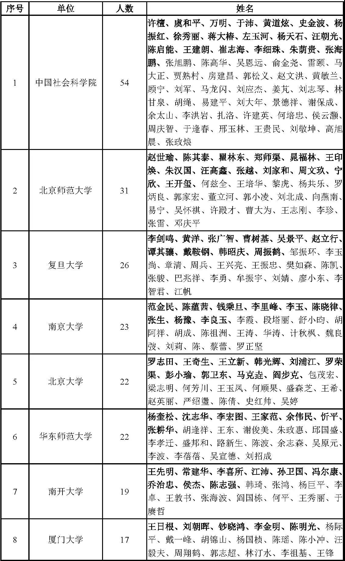 4.本表中的部分学者仅显示姓氏或名,是以采集得到的数据信息为依据;