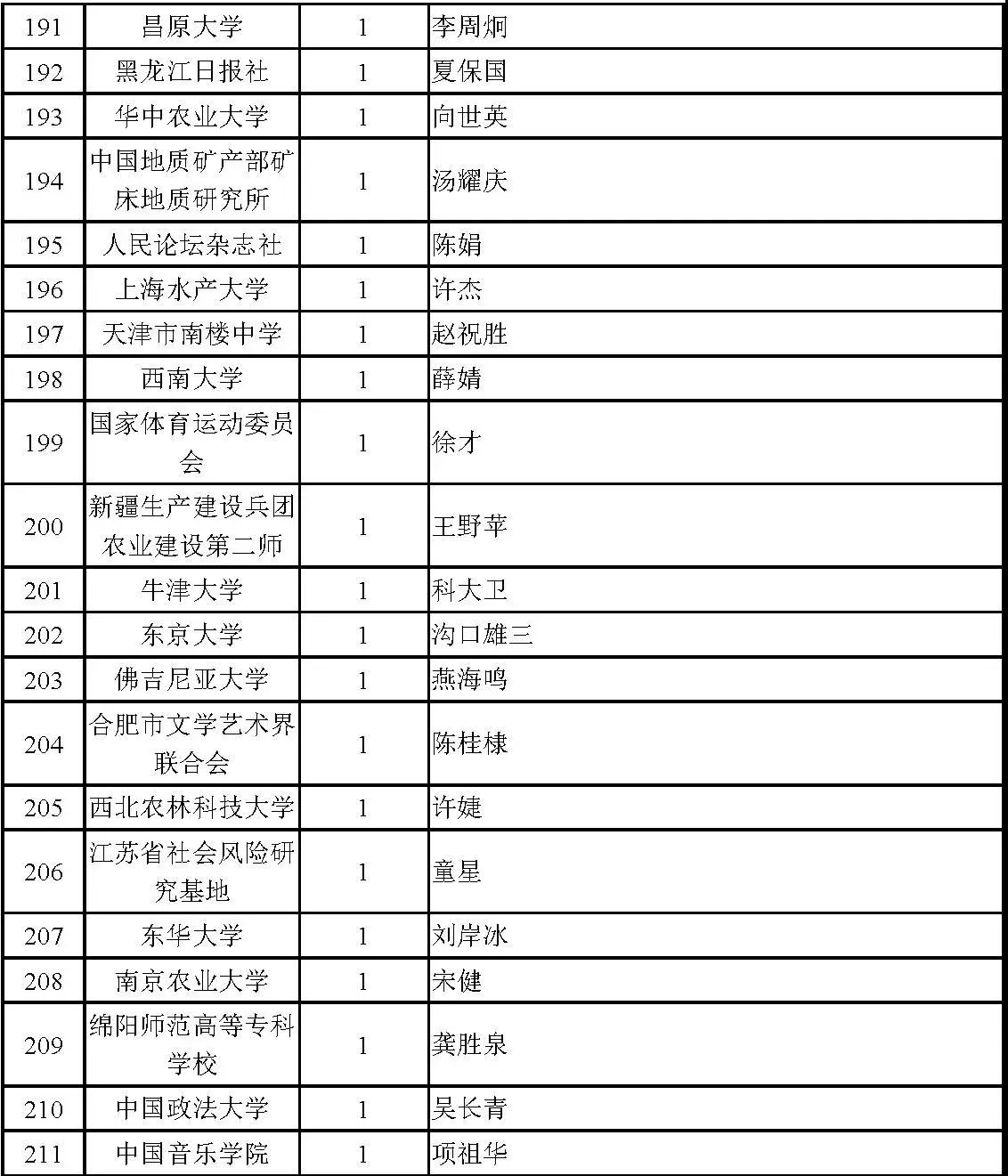 5.本表中的序号仅表示顺序,不表示排名先后。
