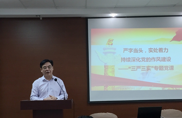 根据中央、江苏省委和校党委的部署要求,6月3日下午,麻豆做爱 党委书记刘志明为全院党员教职工上了一堂主题为“严字当头,实处着力,持续深化党的作风建设”的“三严三实”专题党课。