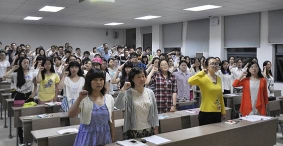 “毕业生文明离校学生党员志愿者”杭亚杨等18名同学颁发聘书,党员志愿者们将会积极发挥模范带头作用,以高度责任心为确保全体毕业生文明离校贡献出自己应有的力量,共同营造文明、和谐、温暖、感恩的毕业氛围。 在薛凡校长的带领下全体党员重温入党誓词,大家紧握右拳,用自信忠诚的目光、铿锵有力的声音、凝视着红火的党旗庄严宣誓,更加坚定对党忠诚、践行价值观、共筑中国梦的理想信念,牢固树立全心全意为人民服务、努力在平凡的工作岗位上创造不平凡的业绩的党员意识。 |