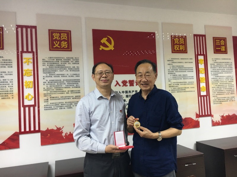 为表达对老党员的敬意,鼓励广大党员继续保持共产党人本色,坚定理想信念,同时激励新时期广大党员传承党的优良传统和作风,在会议上邓国林书记向学院50年以上党龄的退休党员代表叶林生同志颁发荣誉纪念奖章。