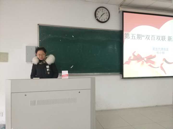 活动开始,教育培训部的巫智政主持了本次活动。他首先回顾了2018下半年的活动:10月19日的开班典礼、10月21日的党建书屋和邓书记党课等。并且展示分析了本次课程以及结业成绩,如第六期入党积极分子优良率为49.3%,第60期党的基本知识培训班优良率为86.0%等。他对于同学们在2018下半年的学习活动中所展示的坚持认真踏实的态度表示赞扬。接下来是党员爱行助力团教育培训部的罗奕初同学为在座的同学总结“双百双联”活动的成果和经验等。她展示了双百双联活动的海报、活动的照片,并评选出了活动的优秀志愿者。2018级劳动与社会保障专业杭子郁同学作为新生代表发表了参与本次活动的感想,她介绍了参与本次活动的具体的经历以及对于对接学姐付出的感动。并表示,她也会在接下来的生活中,传递这种爱心与奉献精神。2016级劳动与社会保障专业张灵羽同学作为优秀志愿者代表进行了发言,她介绍了与学妹、学弟交流的内容,并表达了对于帮助过自己的学长学姐们的感激。