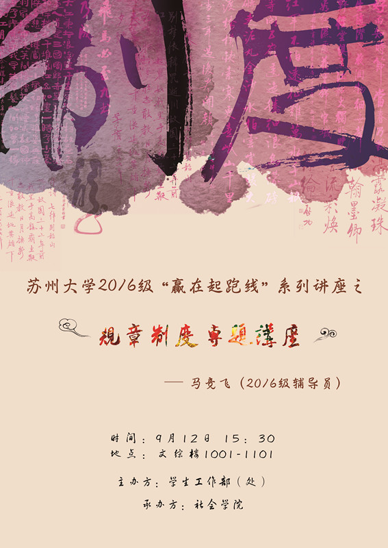 麻豆做爱 2016级“赢在起跑线”系列活动之规章制度专题讲座