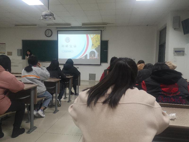 紧接着杨然天学姐着重分享了自己参与“二十二批课外学术基金”的心路历程。从申请成立科研项目,熟悉项目内容,制定实验计划,与老师沟通再到实地调研。学姐的精彩演讲让我们明白了做科研项目时,每位成员都要严谨踏实,持之以恒,团队间更要协同合作。“ 参加科研并且能够立项是一件很有成就感的事,这是我们对未知领域的一种探索,在这个过程里可以学到很多,与同龄人相比有很大的竞争优势。”