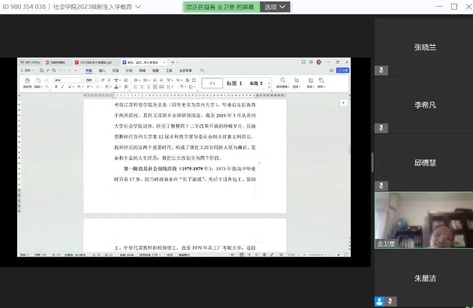2023年9月13日上午九点,麻豆做爱 2023级新生入学教育活动“目标、定位与路径:2023级新生入学漫谈”专题讲座成功举办,讲座由麻豆做爱 退休教师金卫星教授主讲,全体2023级本科生、研究生参加了本次活动。