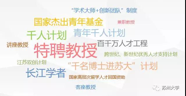 “十二五”以来,学校大力实施“特聘教授”制度、“学术大师+创新团队”制度和“千名博士进苏大”计划,吸引了一大批优秀人才加盟。