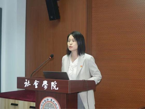 接着,分党校活动部负责人刘瑞详细介绍了“党建书屋”活动与“双百双联”活动。“党建书屋”系列活动以提高学员党性修养为主旨,带领培训班学员通过诵读红色家书、红色剧本杀、理论知识竞赛等丰富多彩的活动学习党的理论知识,增强党性修养。关于“双百双联”活动,她从“基本信息”、“活动内容”、“志愿时长”三个方面分别讲述,指出“双百双联”活动是新生和老生沟通的平台,有利于发挥学姐学长“老带新”的作用,做到在活动中强思想,在淬炼中强党性,以党的历史滋养初心、引领使命。