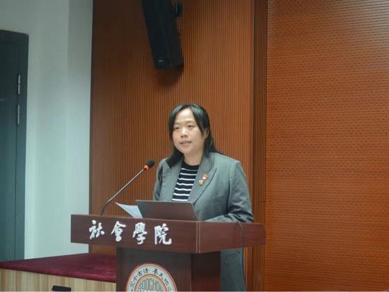 紧接着,2022级档案学专业齐佳丽同学作为预备党员培训班学员代表发言。她分享了参加以往积极分子培训班的学习心得,同时也呼吁大家必须把党的历史学习好、总结好,把党的宝贵经验传承好、发扬好,胸怀远大理想,脚踏实地奋斗,努力提高自身素养,牢记习近平总书记对青年的殷切嘱托,立志做有理想、敢担当、能吃苦、肯奋斗的新时代好青年。