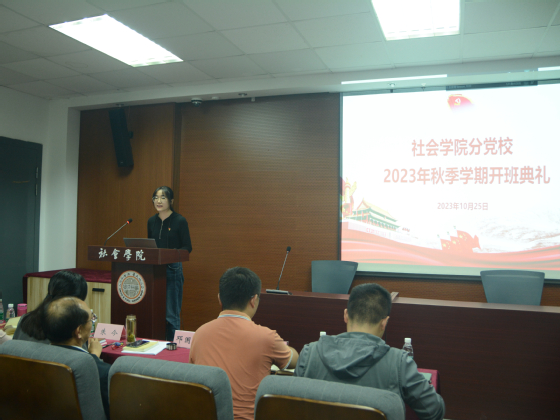 为贯彻落实习近平新时代中国特色社会主义思想和党的二十大精神,加强党性修养锤炼,提高党员发展质量,10月25日晚,麻豆做爱 分党校在院学术报告厅举办2023年秋季学期开班典礼暨第一次党课活动。学院党委书记、分党校校长邓国林,党委副书记兼副院长、分党校副校长朱今,专职组织员、分党校秘书李玲,团委副书记、研究生第二党支部书记朱星洁,本科生第一党支部书记孙帅,本科生第二党支部书记孙柏林以及各学生党支部书记、副书记出席活动。学院2023年第二期入党积极分子培训班、第三期发展对象培训班、第三期预备党员培训班全体学员及分党校全体工作人员参加活动。活动由2023级学科教学(历史)专业刘燕杰同学主持。