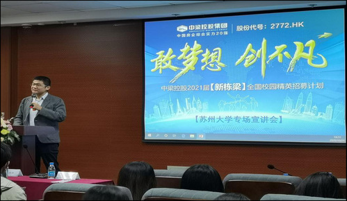 接着,李和栗总裁和张振周院长分别进行了讲话。李总向同学们分享了自己的职场经验并提出三点建议:一是对各行业要有深入了解,二是要选择开放、包容的企业,三是个人要明确方向,培养能力,做好规划。听了李总的分享,同学们收获满满。张院长从中梁布局、发展历程、新栋梁的入职集训、薪资报酬、招聘计划和招聘流程等几个方面介绍了中梁控股集团。听了张院长的讲解和观看了往届管培生的发展历程后,同学们都对中梁控股集团有了更进一步的了解。