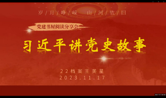 2022级档案学专业王美星同学分享了《习近平讲党史故事》一书。他认为这本书收录的故事内容感人至深,思想内涵深刻,语言通俗易懂,紧扣中国共产党为中国人民谋幸福,为中华民族谋复兴的奋斗足迹。王同学讲述了“右玉的奇迹”、“领导干部的楷模:孔繁森”等故事,让其他学员也对这本书充满了兴趣。
