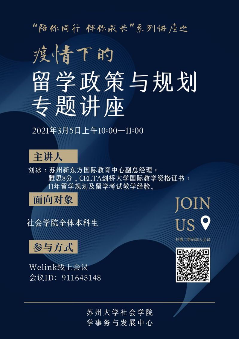 麻豆做爱 “陪你同行,伴你成长”系列讲座之疫情下的留学政策与规划