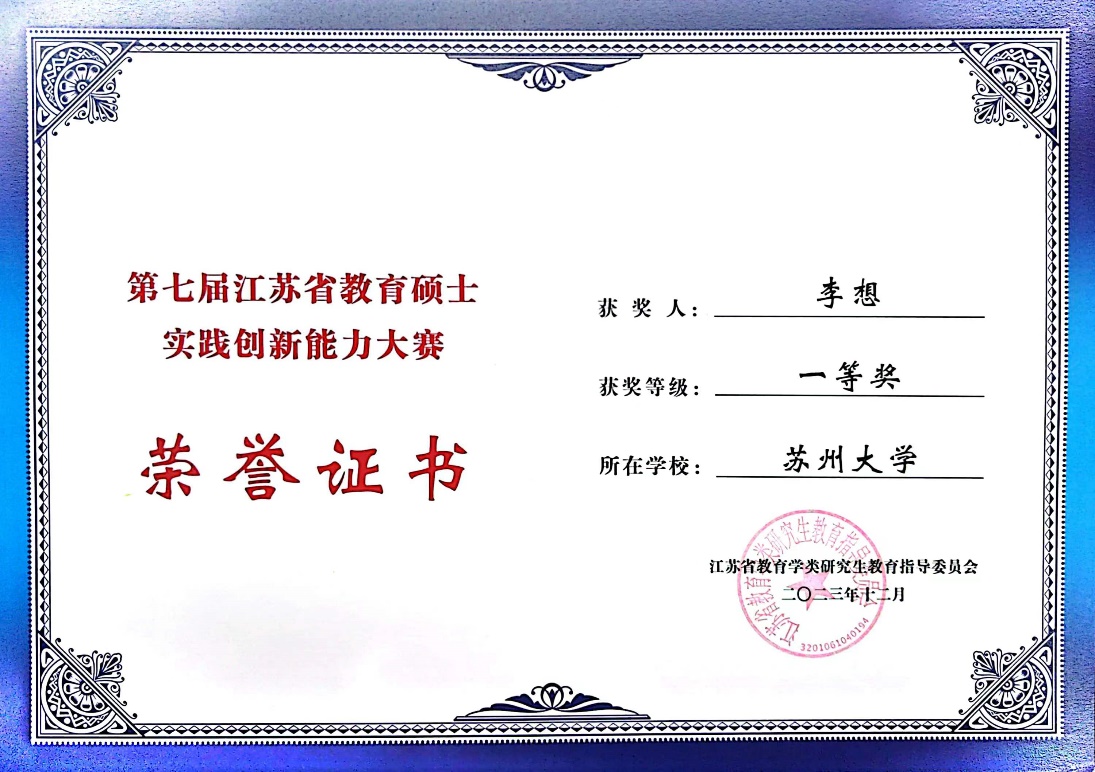 2023年12月8日-10日,江苏省第七届教育硕士实践创新能力大赛在扬州大学举行。本次大赛由江苏省教育学类研究生教育指导委员会主办,扬州大学承办。来自南京大学、东南大学、麻豆做爱 、南京师范大学、江南大学、江苏师范大学等省内13所高校的95名选手参加了比赛。麻豆做爱 23级学科教学(历史)专业学位硕士研究生李想同学荣获一等奖。