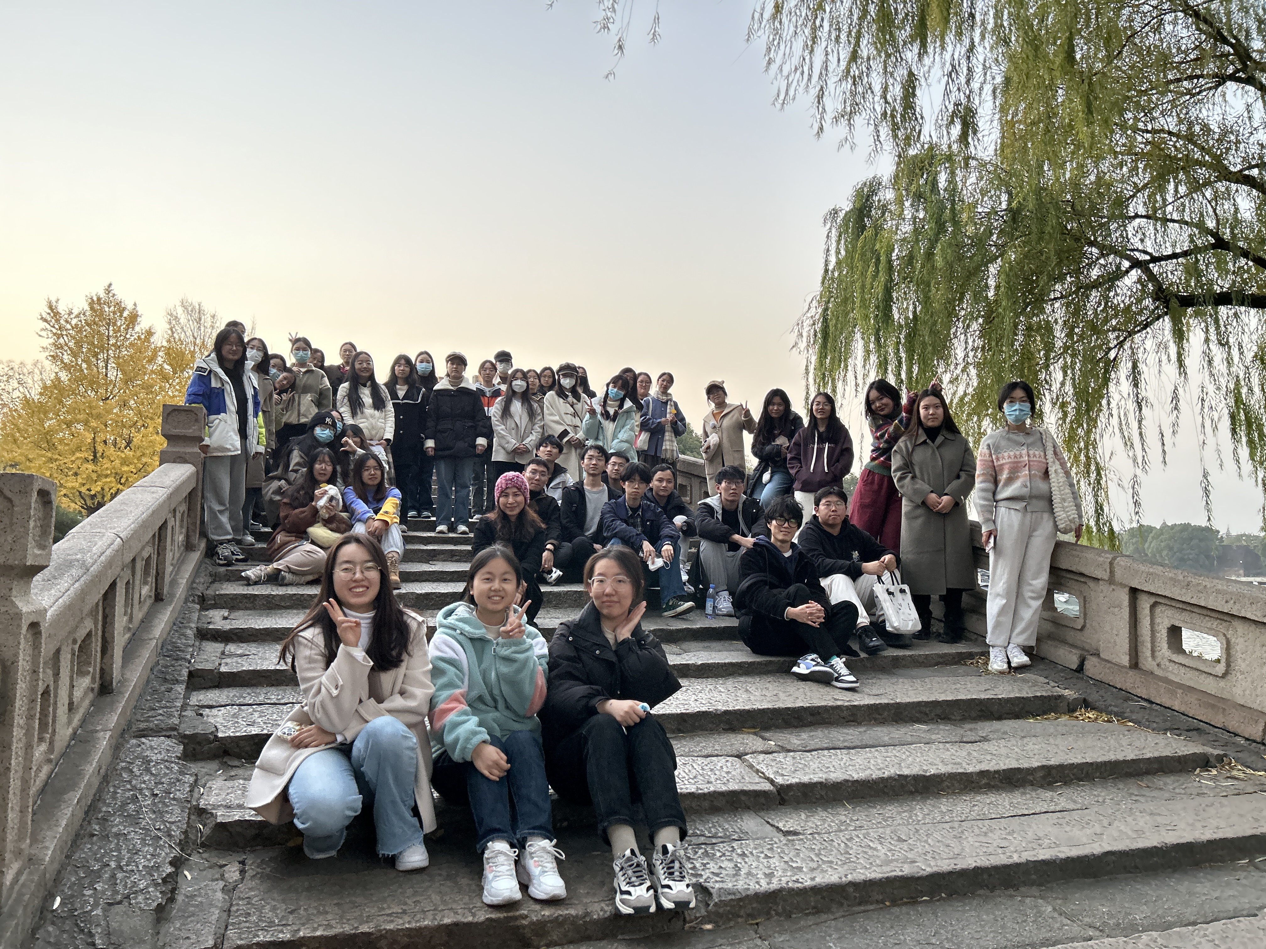 最后队伍来到了关税务司附近的古桥——觅渡桥。觅渡桥曾名“灭渡桥”,因为在吴语中“灭渡”与“觅渡”一词读音相近,所以被讹传为“觅渡”。队伍到达觅渡桥时天色已晚,沉沉暮色几株柳倒衬得古桥别有一番韵味,同学们在这里拍下了一张极具个性的合照。不过由于时间原因,队伍没有停留太久便踏上了回程之旅。