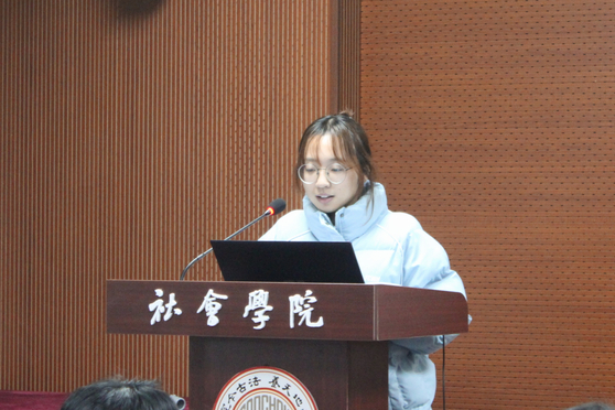 紧接着,“红色经典朗诵”活动代表进行展示。韩诗雨同学带来《我们抢上前去迎未来的文化吧—高君宇致女友石评梅》,生动地演绎出作品细腻的情感,让学员们感受到了高君宇先辈担当“改造世界的责任”的革命豪情和与石评梅共同投身革命事业的决心。