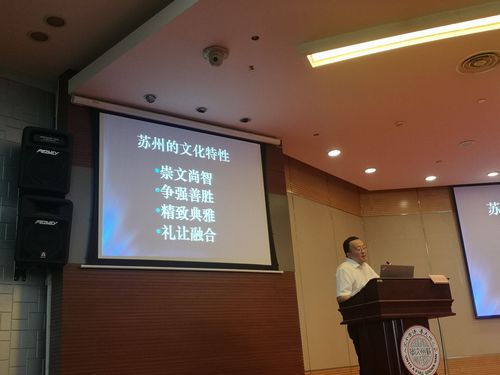 陈伟骏先生又列举了苏州古往今来的有名人物及其事迹,并最终总结出苏州所具有的文化特性:崇文尚智、争强善胜、精致典雅、礼让融合。由此他终于道出了苏州文化与孙子文化及吴国文明的深刻内在联系,他还强调,作为苏州文化源中的一份子,在座的同学们更应该主动去了解吴国文明,了解孙子文化。