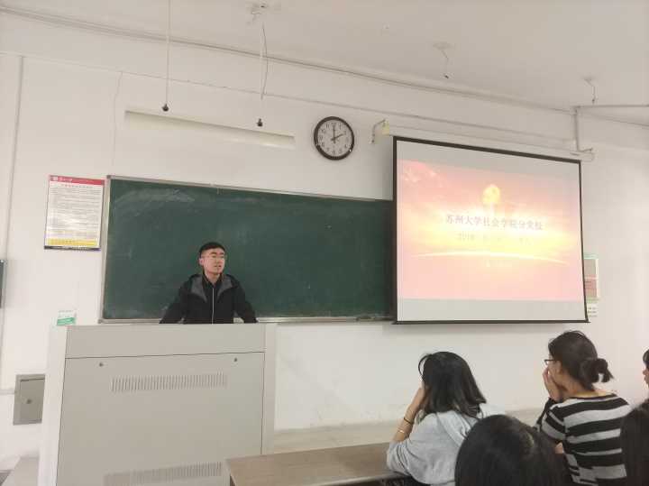下午两点,典礼准时开始。教育培训部的王昕宇同学主持了本次典礼,在典礼一开始,王昕宇同学首先介绍了分党校的意义和任务,他指出,分党校是申请入党的青年学生或刚刚加入党组织的党员们,进一步深入学习党史,积极向党组织靠拢,从思想上入党的重要载体。并且他从麻豆做爱 分党校概况、组织机构成员等方面向各个培训班的成员全面介绍了麻豆做爱 分党校,让培训同学对于麻豆做爱 分党校有了清晰的认识。接下来他详细介绍了各个培训班的培训要求与注意事项。王昕宇同学从课堂纪律、考试纪律等方面着重强调了参训纪律,强调党校是党员纯洁性教育的第一课堂,各个学员要严格遵守参训纪律,从思想上到行动上,时刻以一个党员的身份要求自己,充分发挥党员的先进带头作用。为了让培训人员对于培训注意事项有更深的了解,王昕宇同学还强调了考勤与请假等日常注意问题。