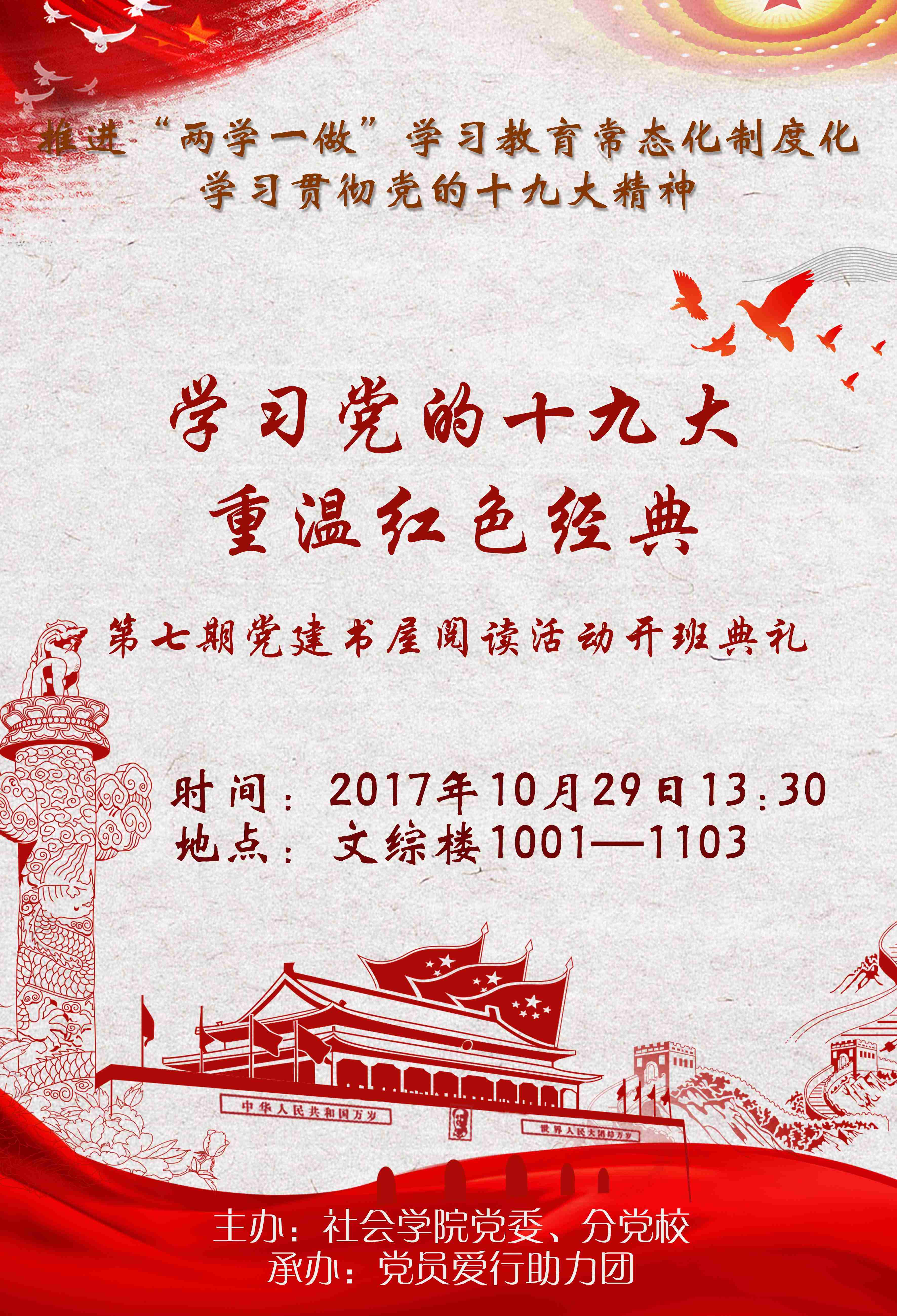 分党校通知:第七期党建书屋阅读活动开班典礼(海报)