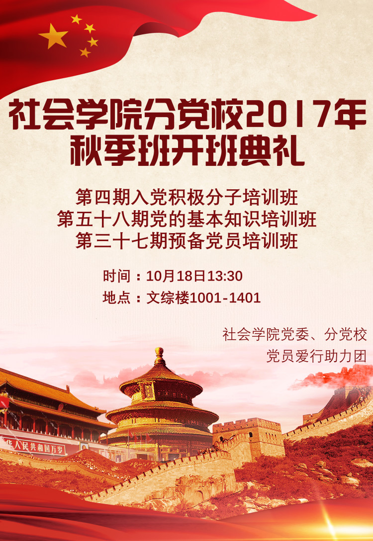 分党校通知:麻豆做爱 分党校2017年秋季开班典礼(海报)