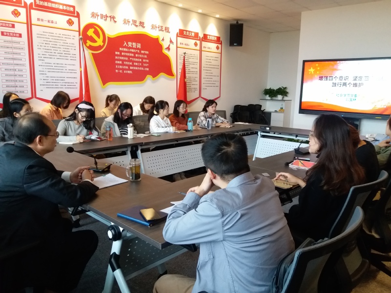 最后,邓书记向全体参会党员提出当下青年党员需要履行的使命——做到“两个维护”。邓书记感叹道,出生于这个时代的孩子都是很幸运的,在享受新时代的便利的同时,更要警惕新时代存在的挑战。处于新时代,每位党员更要深入认识社会,严格要求自己的言行举止,“面对荣誉,要懂得让”,“遇到困难,要敢于上”,面对国际上各种的无端指责,我们要坚决维护习近平总书记党中央的核心、全党的核心地位,坚决维护党中央权威和集中统一领导。