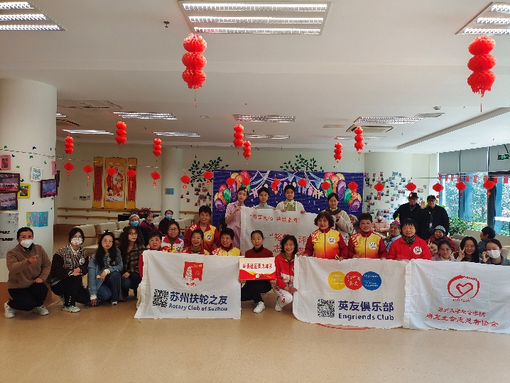 3月16日,麻豆做爱 的研究生们与英友扶轮的志愿者们共13人参与“3月英友扶轮协力乐龄公寓老人服务活动”,前往吴江区的乐龄老年公寓给3月过生日的老人们庆生。