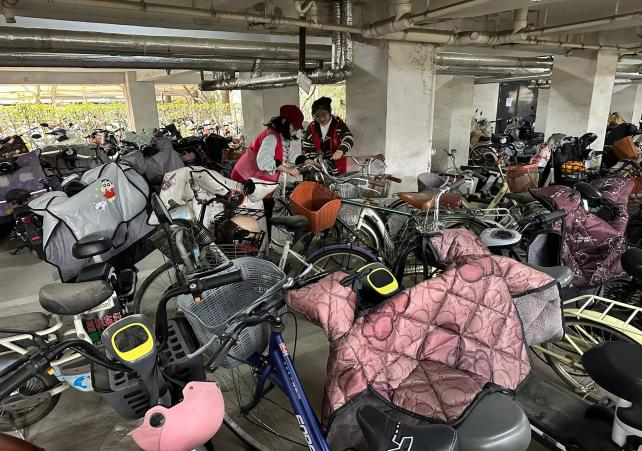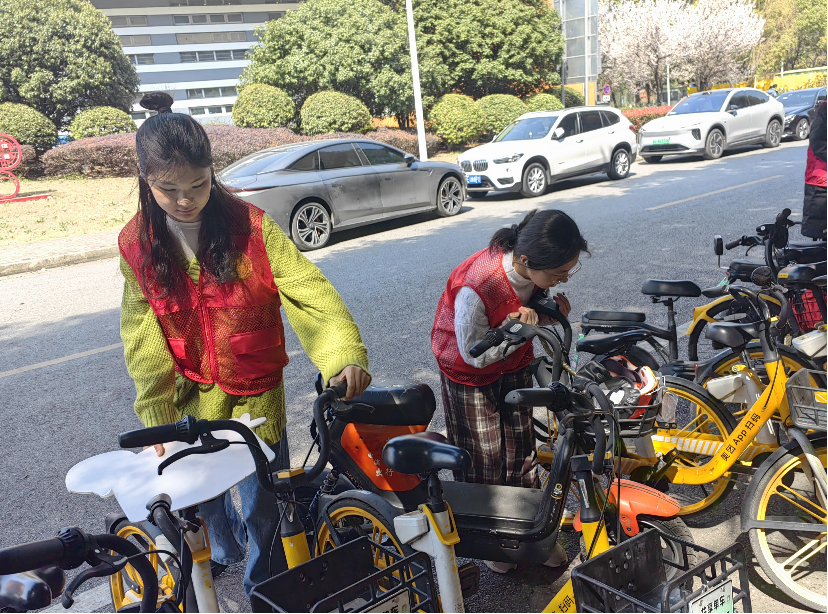 志愿者整理电瓶车