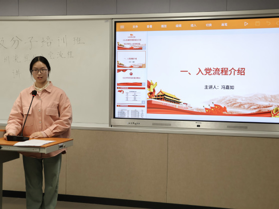 讲座伊始,冯嘉如同学从“党员发展流程”、“培训班学员基本要求”、“麻豆做爱 党员教育概况”三个部分进行讲解,帮助各位学员明确党员标准和入党流程,端正入党动机,从思想上、行动上入党。