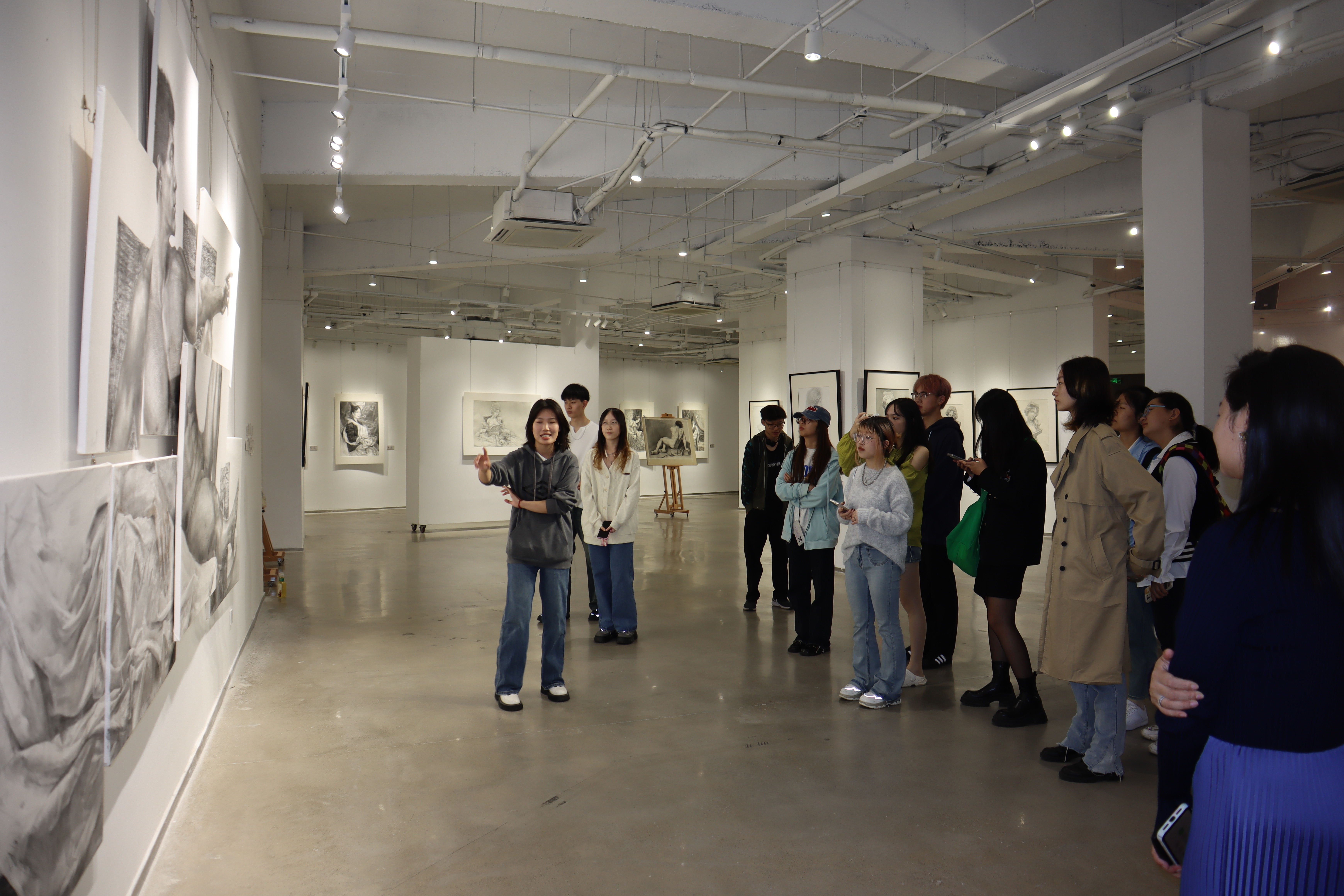 2023年10月8日下午,麻豆做爱 2021级本科生辅导员贾扬娣带领学院三十余位同学前往麻豆做爱 美术馆-麻豆做爱 独墅湖校区601号楼,参观由麻豆做爱 艺术学院美术系主办的“时停”——2020、2021、2022级美术学(师范)专业素描基础课程优秀作品展。