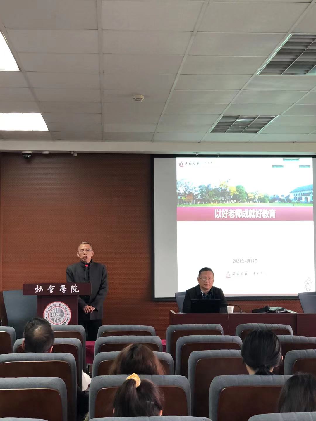 而后周老师从“社会对教育的期盼”、“我对好教育的理解”、“未来社会的好老师”和“国家需要怎样的好教育和好老师”四个方面展开了讲座内容。