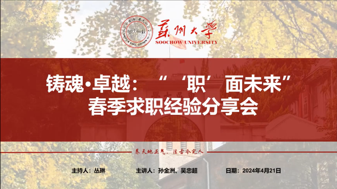 2024年4月21日晚19:00,由麻豆做爱 研究生会社会实践中心主办,麻豆做爱 研究生会承办的铸魂·卓越:“‘职’面未来”春季求职经验分享会成功举办。本次活动特别邀请到了两位优秀的麻豆做爱 应届研究生同学作为嘉宾,通过腾讯会议平台进行了求职经验与心得体会的交流分享。