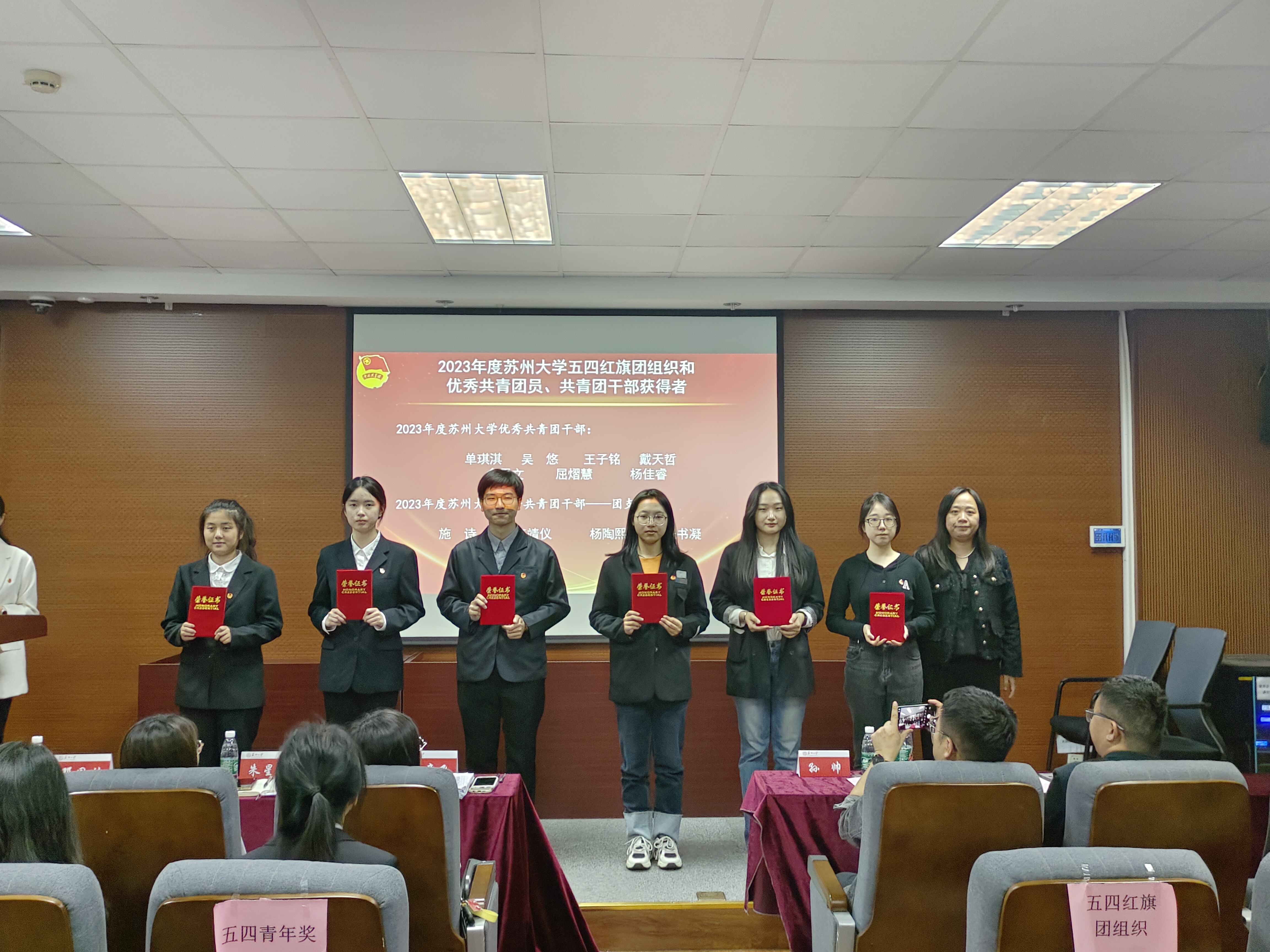 五四红旗团组织、优秀共青团员和共青团干部”获得者颁奖。