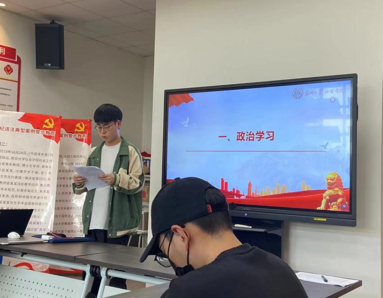 最后,朱星洁老师带领大家学习了《麻豆做爱 麻豆做爱 研究生时代新人“铸魂•卓越”工程实施细则》,她结合麻豆做爱 研究生会的实际工作,从党建引领、导学创优、思政增能、学术文化浸润、奖励资助护航、就业质量提升等方面进行深入阐释。此外,朱老师还对目前麻豆做爱 研究生会的管理制度和工作安排提出了新的标准和要求:研究生会要以服务同学为目标,开展形式更为多样、内容更为丰富、更有吸引力的活动,要以高标准、严规范开展研究生会各项工作。