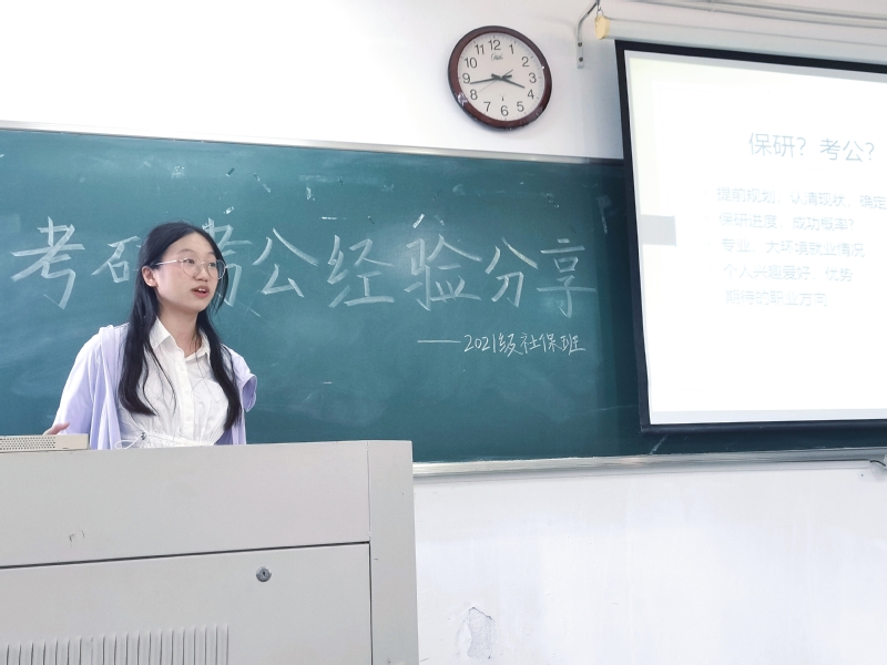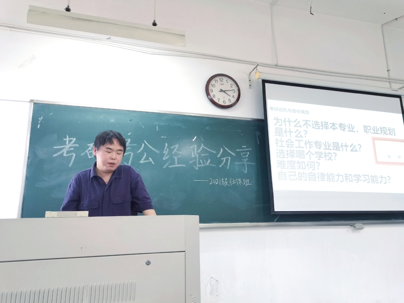 张文同学,20级社会工作专业,现在已经被南京大学社会工作所录取。他强调在考研前,需要做好分析自身条件、了解学校和专业、制定复习计划三大准备。他以自己为例,通过分析自身条件和了解专业与学校,最终决定报考南京大学的社会工作。他提到,在决定好专业后,便要开始制定复习计划。首先背诵要由细到粗,课外知识极为重要,但要建立在书本之上,时间安排因人而异。同时他认为制定复习计划时,首先需要明确复习目标,然后,应该根据复习目标,制定详细的复习计划,包括每日、每周、每月的复习内容。最后,他认为应该根据复习进度和效果,适时调整复习策略,确保复习效果最大化。他认为在复习的时候,针对性复习是极为重要的,可以从明确考试要求、分析历年真题和强化薄弱环节三个环节来进行复习。最后也他提及了,我们要做好充分的心态调整与压力管理。在考研的全程中,我们都需要保持好自己的节奏、制定合理的计划、积极面对挑战。