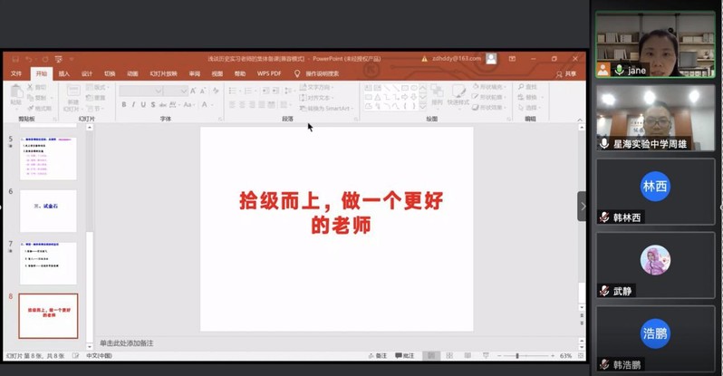 2020年6月19日晚,苏州市工业园区星海实验中学高中部历史教师周雄老师应邀在腾讯会议作了题为《如切如磋,如琢如磨——浅谈历史实习老师的集体备课》的学术讲座。讲座由冯世明老师主持,历史系崔恒秀、张井梅老师以及16、17、18级历史学本科生、学科教学(历史)专硕研究生共五十余人参加。