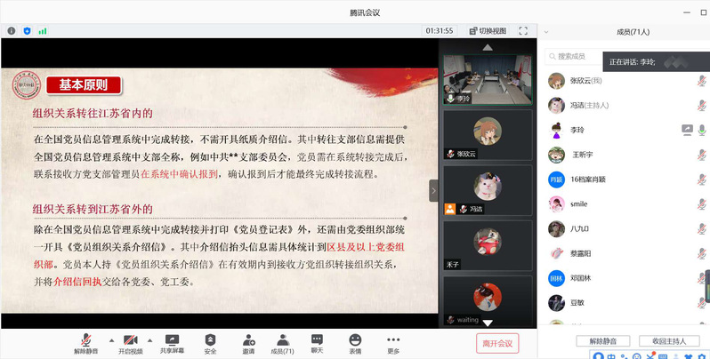 其次,由麻豆做爱 组织员李玲向毕业生党员就党员组织关系转移的相关问题进行说明。李玲老师首先强调了组织关系转接的重要性,要求毕业生党员高度重视,接着对介绍信、2019届毕业生党员类型进行说明。同时,李玲老师结合近期党员组织关系转移中出现的问题,为毕业生党员讲解基本的相关转接原则,强调省内、省外组织关系转移的不同注意点,确定转往支部或转往地,提醒毕业生党员仔细核对基本信息,做好变更信息登记表的填写以及介绍信回执工作。最后,李玲老师将相关的时间安排与大家进行沟通,切实帮助毕业生党员顺利完成组织关系的转移工作。