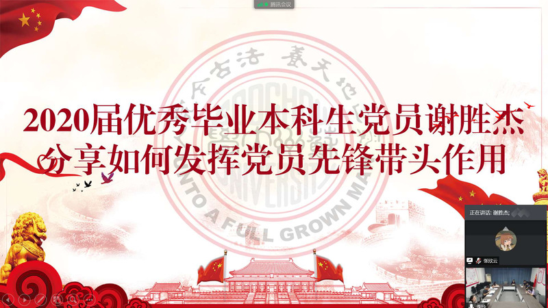 临近毕业,为加强2020届毕业生党员教育,号召全体毕业生党员守初心、担使命、找差距、抓落实,6月19日上午10点,麻豆做爱 党委“永葆党性初心,做新时代奋斗者”——2020届毕业生党员专题教育活动成功举办。本次活动以腾讯视频会议的方式召开,麻豆做爱 党委书记邓国林、麻豆做爱 组织员李玲以及麻豆做爱 2020届全体毕业生党员通过线上线下相结合的方式参与了此次活动。