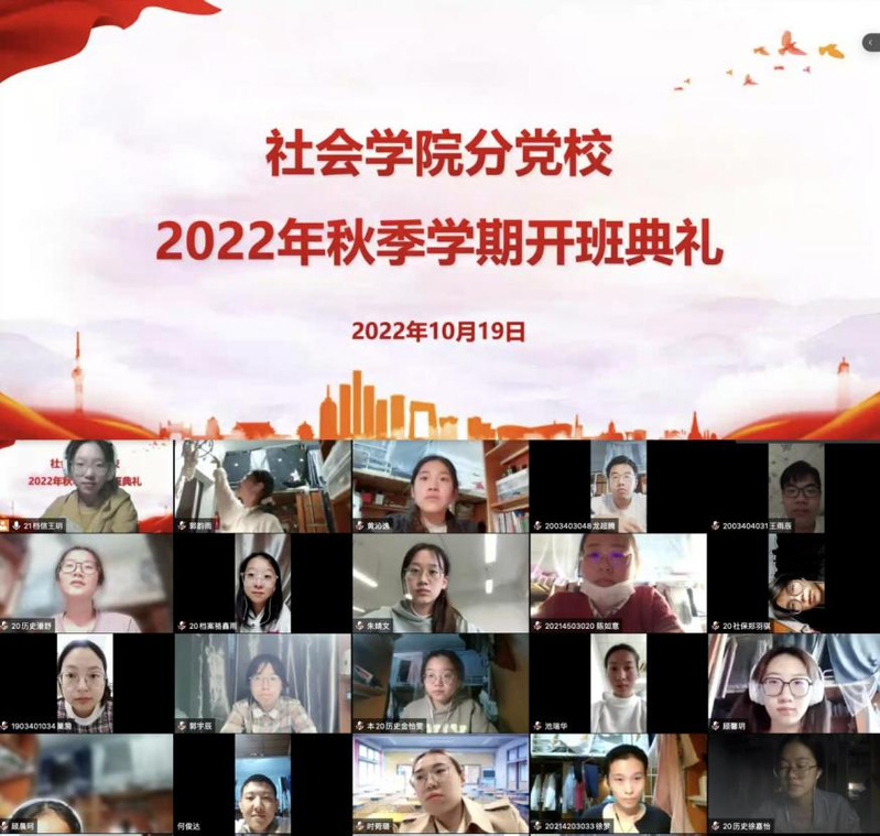 为深入学习贯彻党的二十大精神,扎实推进党史学习教育常态化长效化,加强党性修养锤炼,提高党员发展质量,10月19日下午,麻豆做爱 分党校2022年秋季学期开班典礼暨第一次党课活动在线上平台顺利举行。学院党委书记、分党校校长邓国林,党委副书记兼副院长、分党校副校长朱今,分党校秘书李玲,研究生辅导员朱星洁,本科生辅导员孙帅以及各学生党支部书记、副书记出席活动。学院第14期积极分子培训班、第68期党的基本知识培训班、第47期预备党员培训班全体学员以及分党校工作人员参加活动。活动由2021级图书情报与档案管理类专业王玥同学主持。