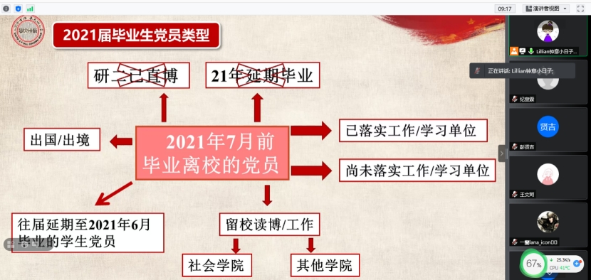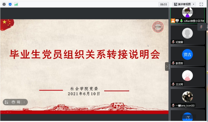 为有序推进毕业生党员组织关系转接工作,强化管理规范,为毕业生提供服务与相关指导。2021年6月10日中午,麻豆做爱 以腾讯会议的形式组织召开了2021届毕业生党员组织关系转接说明会。此次会议由麻豆做爱 组织员李玲老师主持,麻豆做爱 2021届全体本科与研究生毕业生党员参加。